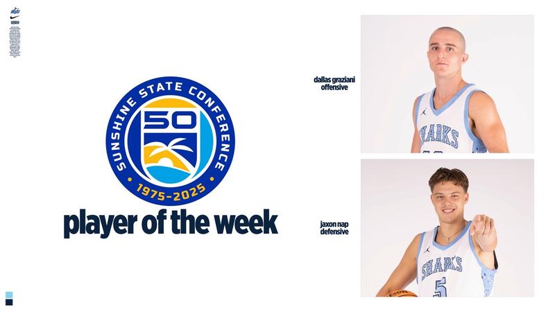 ORLANDO, Fla. – The fourth-ranked Nova Southeastern Sharks men’s basketball program had two players earn weekly awards after their two conference victories last week. Standouts Dallas Graziani and Jaxon Nap were highlighted as SSC Offensive and Defensive Players of the Week on Monday afternoon.