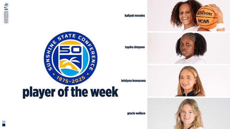 ORLANDO, Fla. – The Sunshine State Conference announced its weekly award winners for the week of February 2-8, and four Sharks were highlighted. Kaliyah Morales, Taydra Simpson, Gracelyn Wallace and Kristyna Hranacova were named Women’s Basketball Player and Defensive Player of the Week, Softball Pitcher of the Week and Women’s Tennis Player of the Week, respectively.